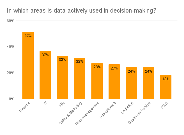 The research also looked at which departments base their decision-making on data. It’s no surprise that Finance comes out clearly on top. Yet there’s still plenty of room for improvement, especially in Belgian companies and from the perspective of leaders other than the CFO.